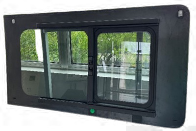 大玻璃中间挖孔,小窗安装在大玻璃的孔内,小窗可延玻璃横向作推拉运动,关闭时小窗与大玻璃外观面齐平。除了齐平推拉窗,公司窗框产品还包括:推拉窗、多窗口滑动窗框、逃生窗、客车车窗、隐藏滑动式车窗、校车窗框、UTV后档对开推拉窗总成、全地形车窗等
